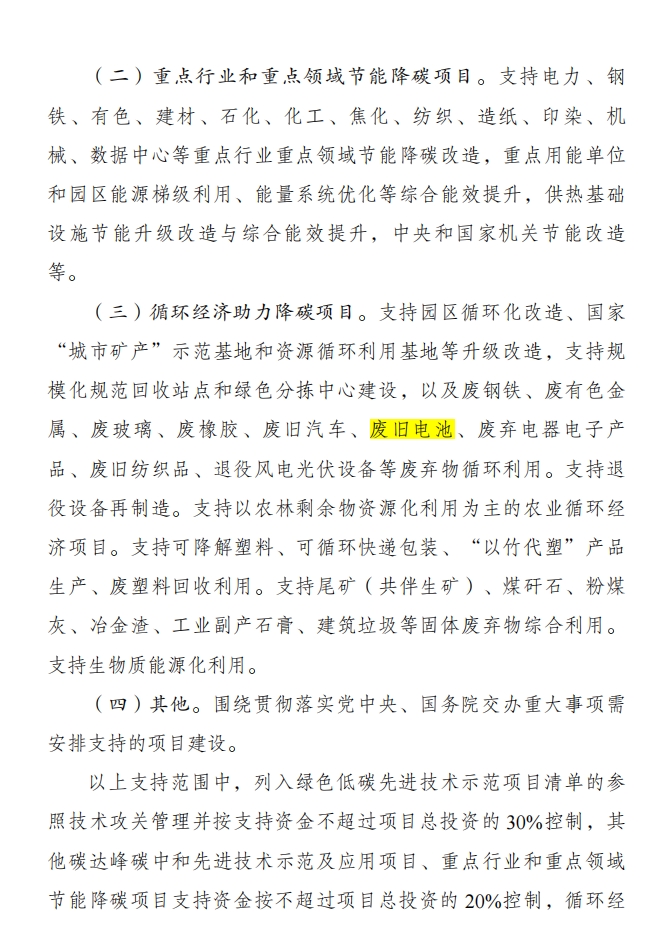 您的當前位置:首頁 > 新聞資訊 > 行業(yè)資訊>《節(jié)能降碳中央預算內投資專項管理辦法》政策下廢舊鋰電池在循環(huán)經濟中的重大作用分析